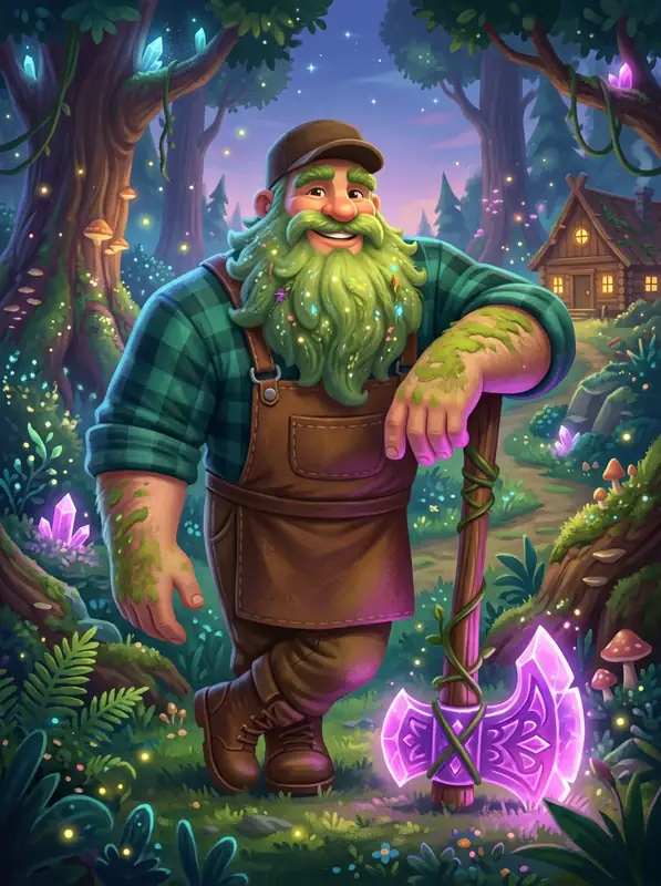 The camp is watched over by Bramble, a gentle giant of a lumberjack with a beard of moss and a glowing crystal axe, who challenges visitors to friendly, risk-free games under the northern lights. Remember, this is purely for funβno real money, just the magic of the woods.